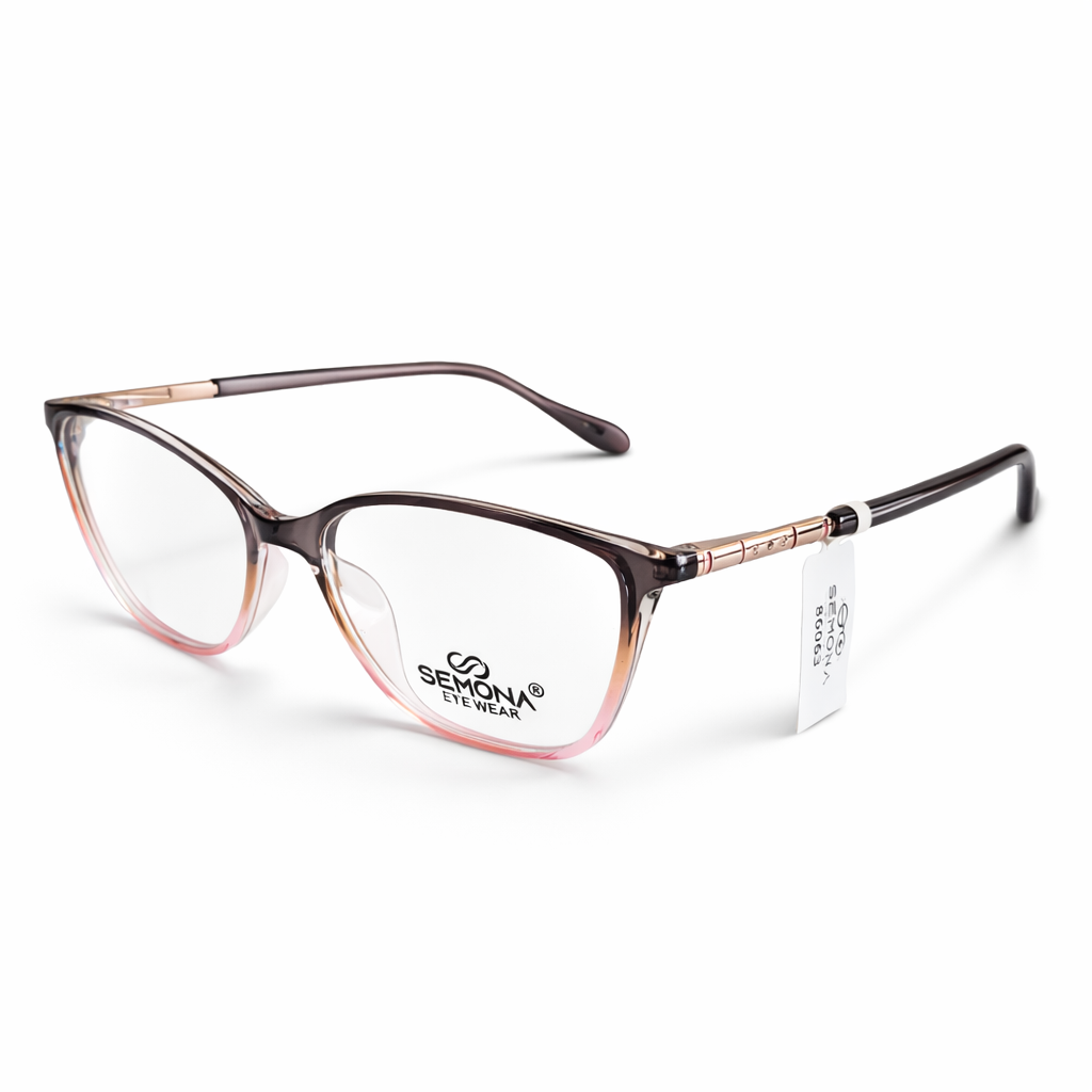 Add a touch of soft glamour to your everyday look with the Semona 86063. These frames feature a stunning Ombré gradient, transitioning seamlessly from a deep, professional cocoa brown at the brow to a delicate, transparent rose pink at the base.